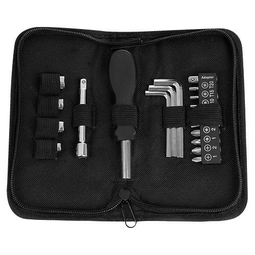 | Descripción: SET DE HERRAMIENTAS INDUSTRY (Contiene desarmador, 10 puntas de desarmador, llaves hexagonales, dado extensión y 4 dados. Incluye estuche de tela.) | |