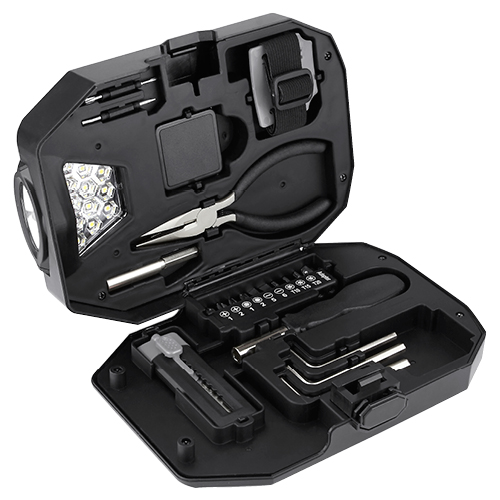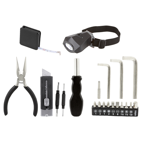 | Descripción: SET DE HERRAMIENTAS VALGUS (Contiene pinzas de punta, lámpara desmontable de 13 LEDS (3 pilas AAA no incluidas), flexómetro 1m, correa ajustable con adaptador para lámpara, 2 desarmadores relojero, dado extensión, desarmador, 10 puntas para desarmador, 3 llaves hexagonales y cúter. ) | |