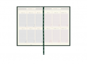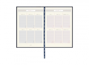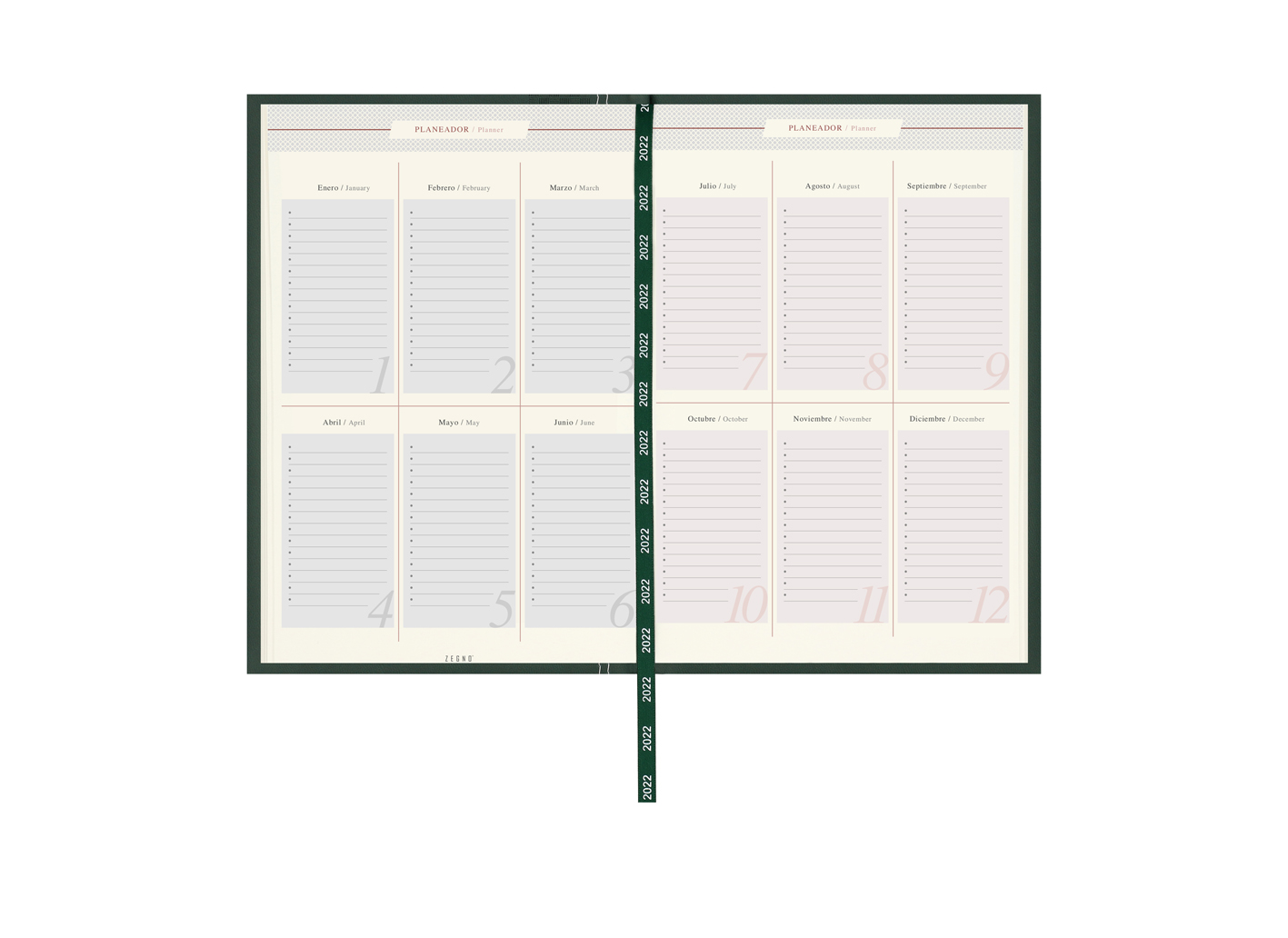 Agenda con 186 hojas. Contiene calendarios 2021-2023, calendario 2022, planeador 2022, planificador semanal, planificador de proyecto, agenda diaria con días festivos oficiales y notas. Incluye caja individual.
