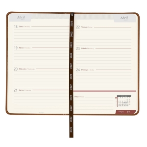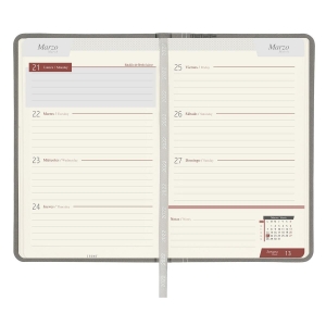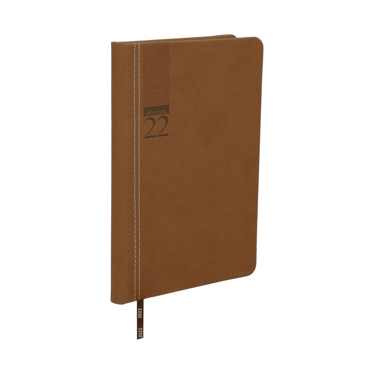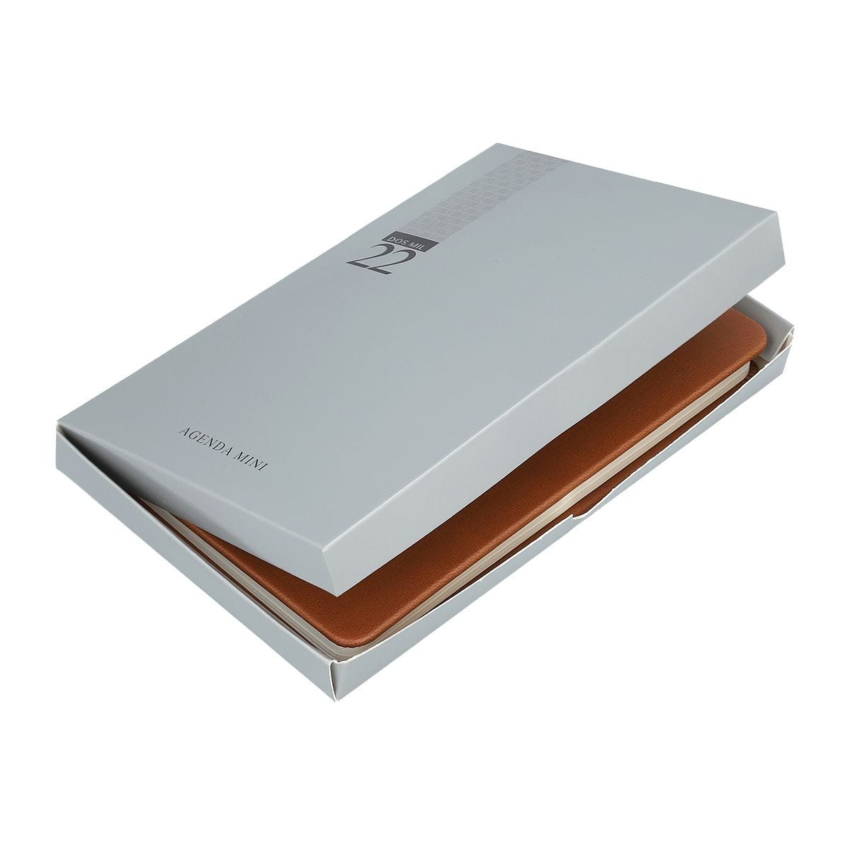 Agenda con 80 hojas. Contiene calendarios 2021-2023, calendario 2022, planeador 2022, programador anual, planificador diario, planificador de proyecto y agenda semanal con días festivos oficiales. Incluye caja individual.
