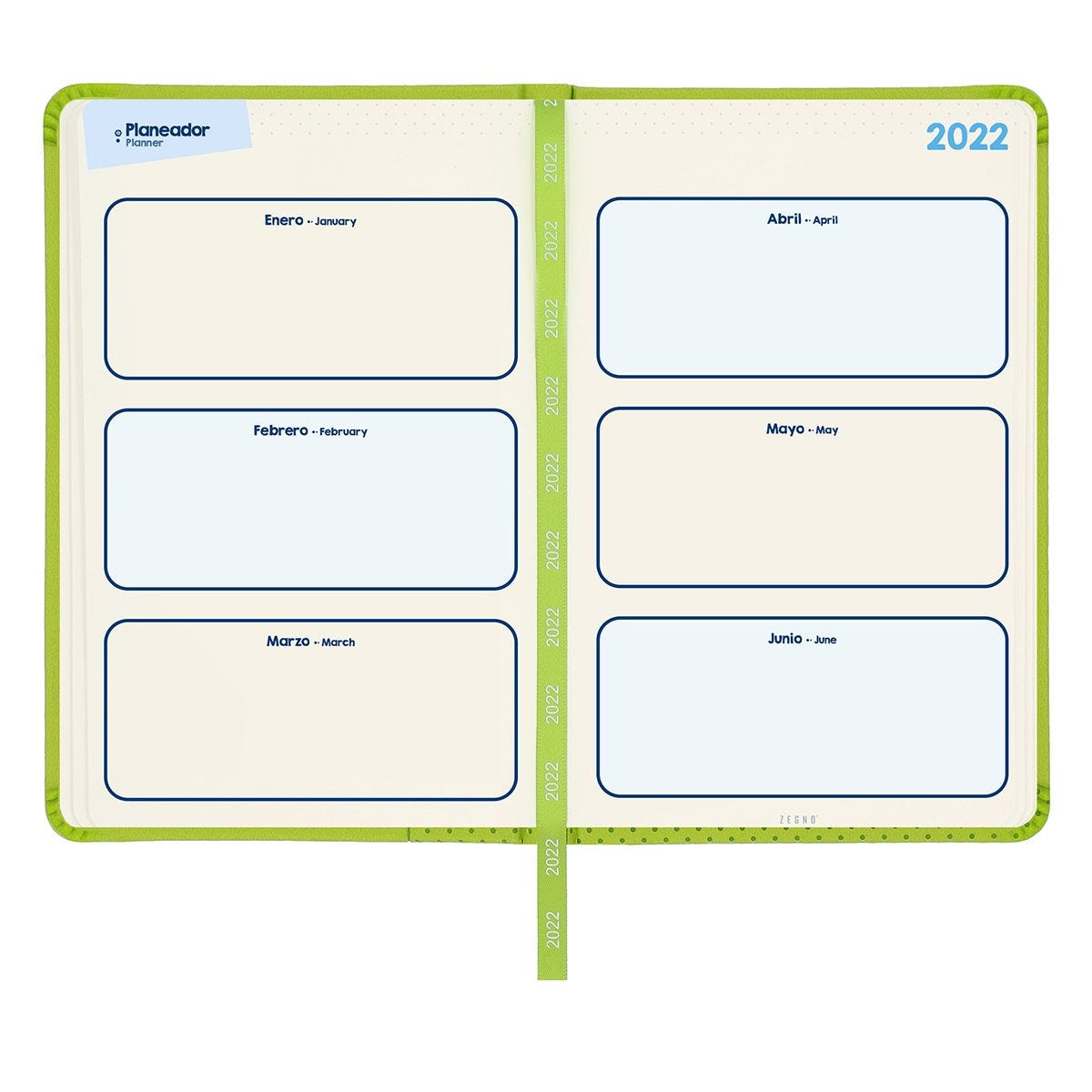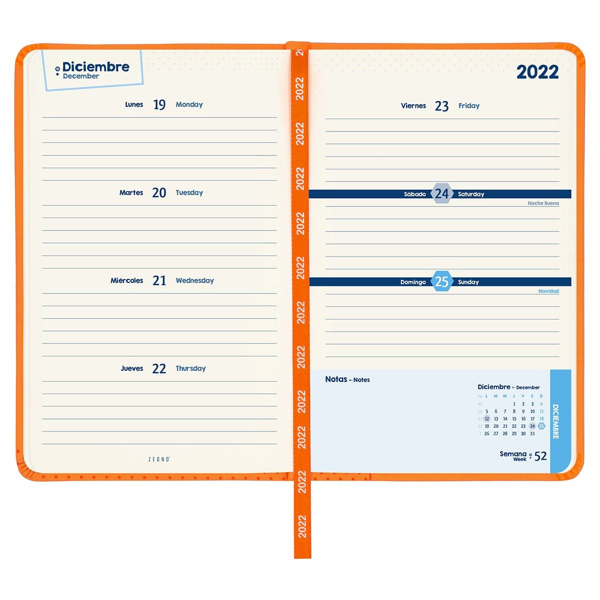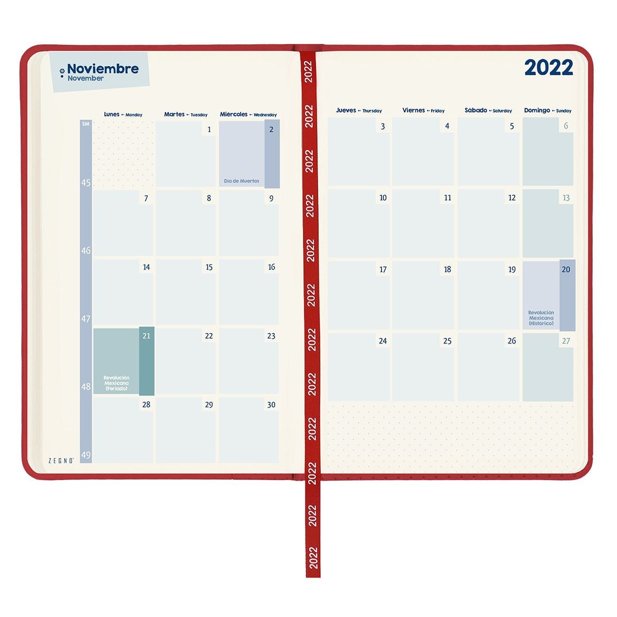 Agenda con 80 hojas. Contiene calendarios 2021-2023, calendario 2022, planeador 2022, planificador diario, planificador de proyecto, agenda semanal con días festivos oficiales. Incluye caja individual.