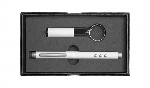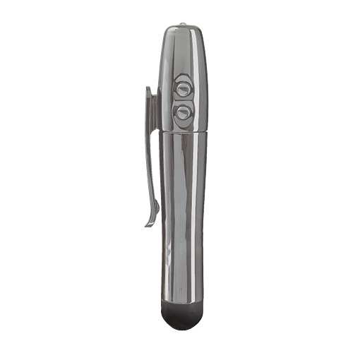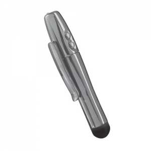Metal. Rollerball y puntero laser para presentaciones, linterna y punta touch en la tapa. Transmisor USB para conexión remota.