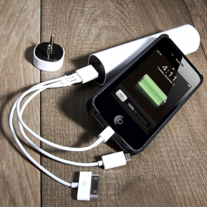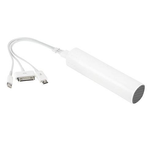 BOCINA CARGADOR LAUREN (Doble función: Bocina portátil y batería auxiliar de 4000 mAh. Incluye cable auxiliar y cable cargador compatible con USB, 30 pin, 8 pin y micro USB.)