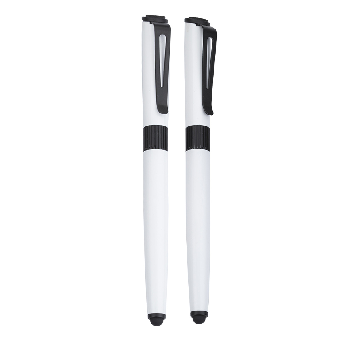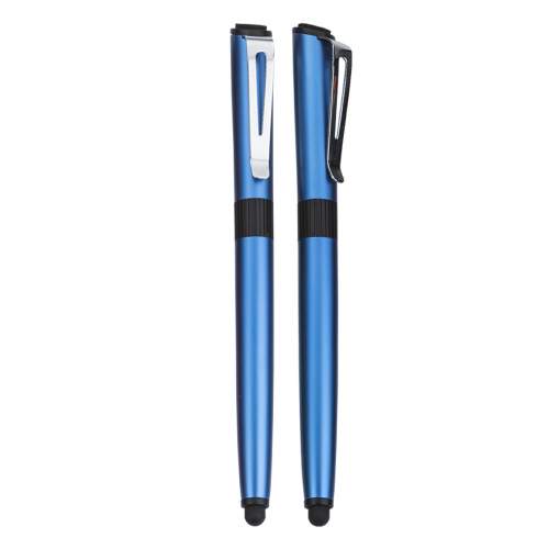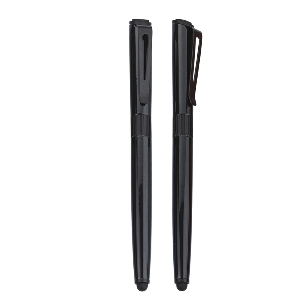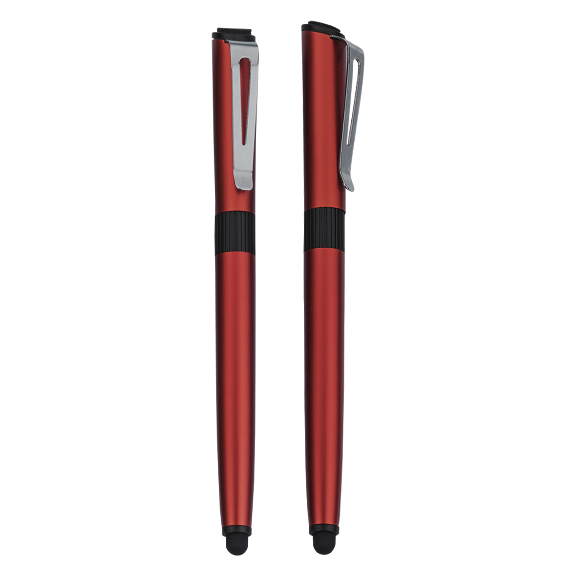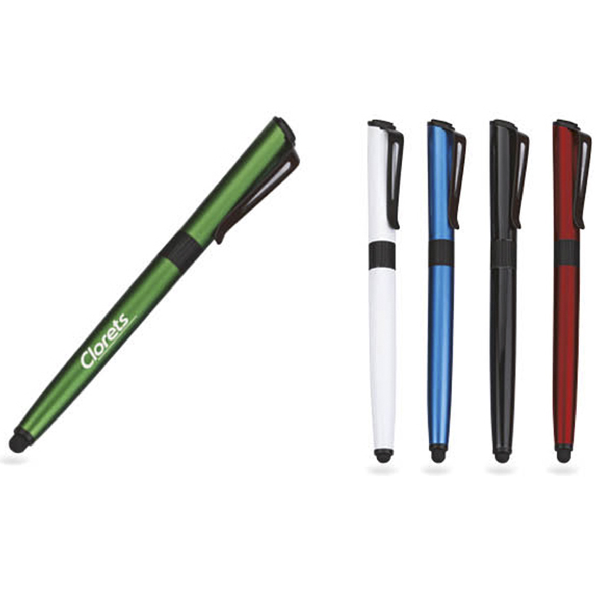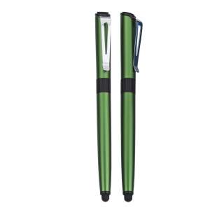 Bolígrafo metálico con goma touch screen y limpiador de pantalla.