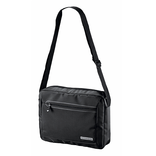 Bandolera layres en color negro **antonio miro** con bolsillo acolchado, cierre al frente y correa de hombro. fabricada en nylon
