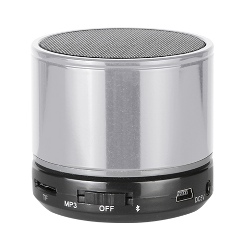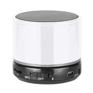 Bocina recargable de plastico con metal, con bluetooth, botones independientes de control en parte inferior, sonido quality y detalle de luz led