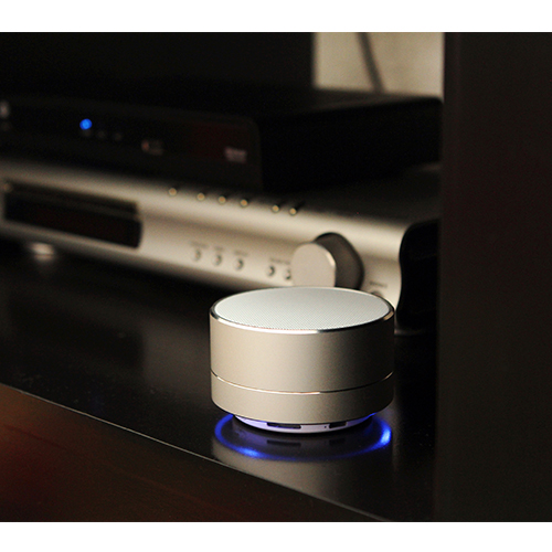 Bocina portatil fabricada en aluminio y abs con bluetooth, recargable con cable usb para pc y luz led