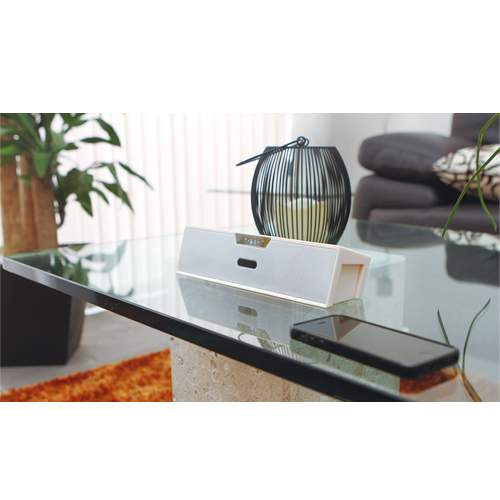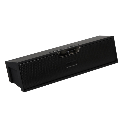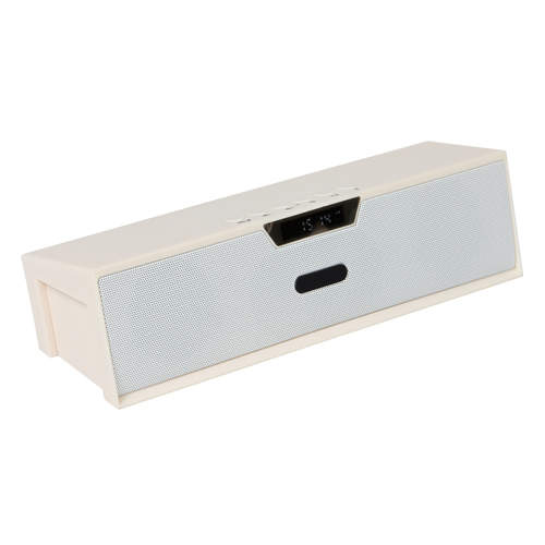 Bocina recargable de plastico, con bluetooth, reloj, alarma, bateria de litio (duracion 12 hrs),pantalla lcd, funcion de manos libres (contesta llamada),entrada micro sd y usb y radio fm