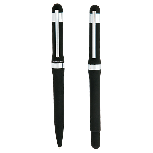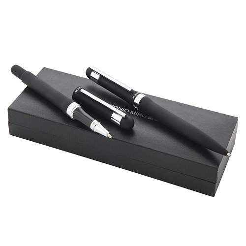 Set de boligrafo y roller de metal, en color negro ** antonio miro **, con tinta azul, incluye estuche