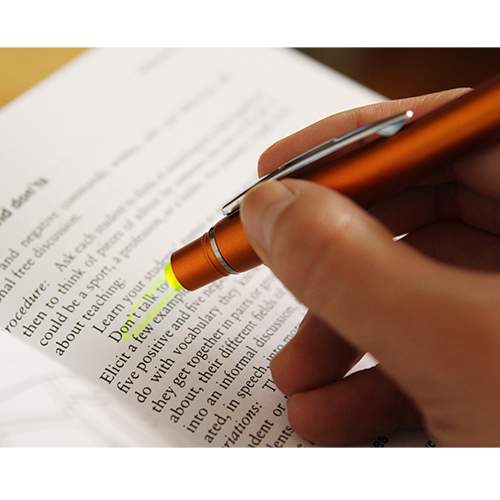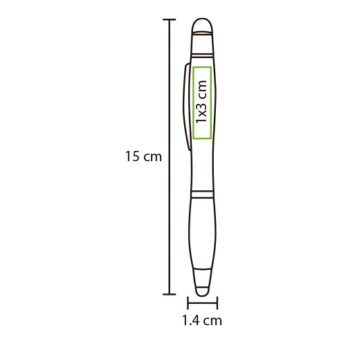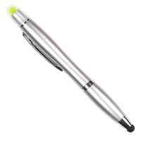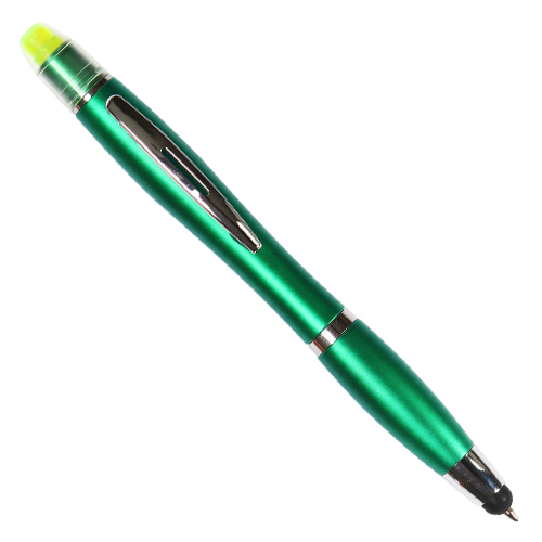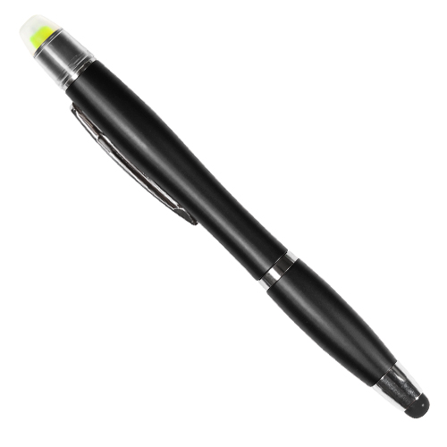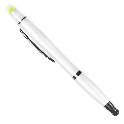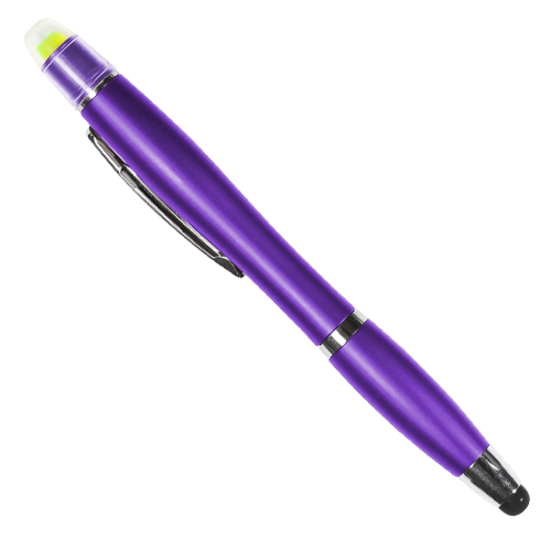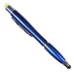 Boligrafo de plastico abs con touch y resaltador de cera (no se seca), tinta negra, colores: azul, blanco, plata, morado, negro, naranja, rojo y verde