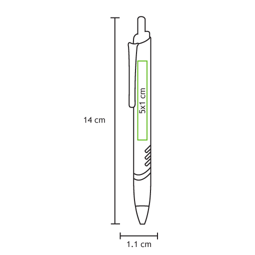Boligrafo con tinta negra, con detalles de colores: negro, rojo, azul, naranja y verde