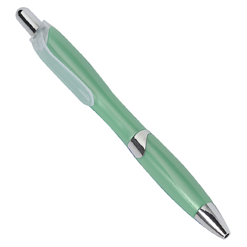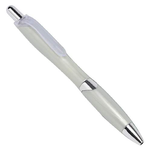 Boligrafo thai de plastico con accesorios plateados, tinta negra