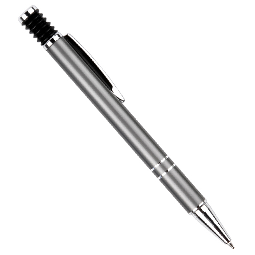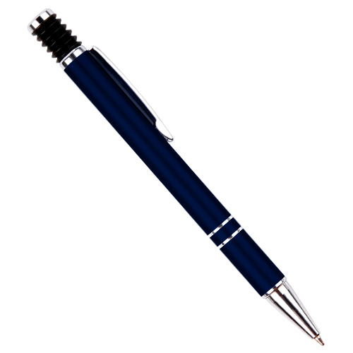 Boligrafo con tinta negra, colores: plata, azul marino,  humo, rojo, verde y azul