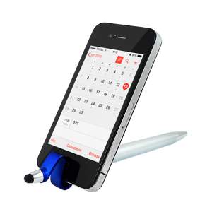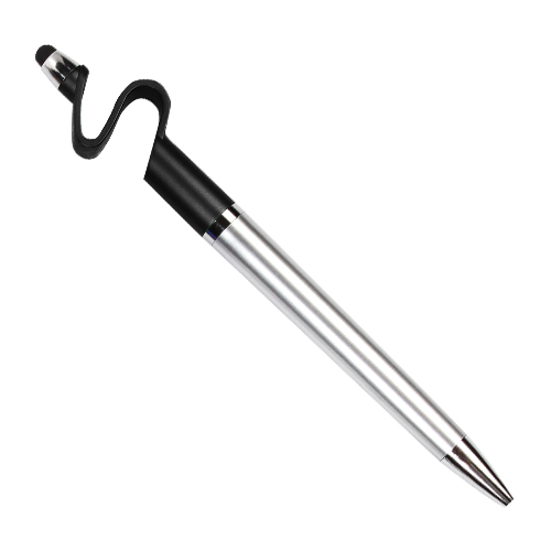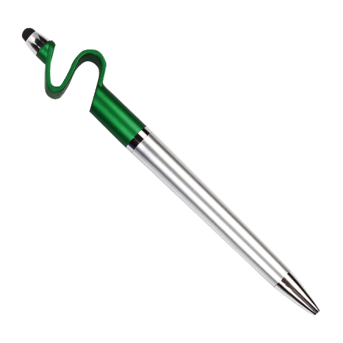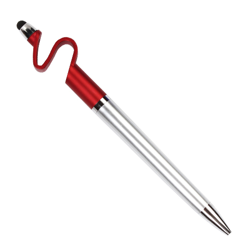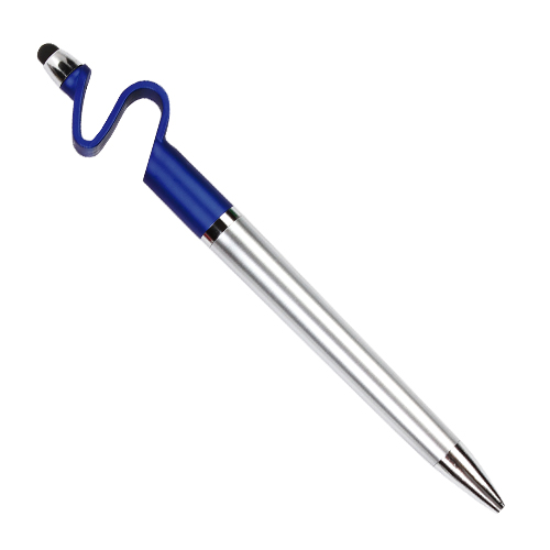 Boligrafo de plastico con touch y diseno base para celular, tinta negra, colores: azul, verde, rojo, negro y plata