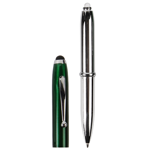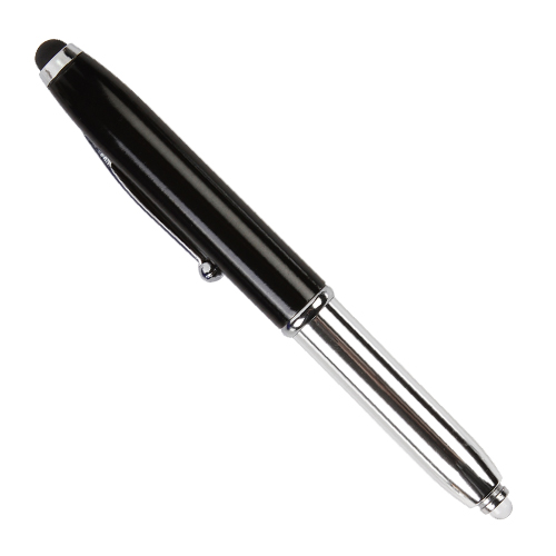 Boligrafo de plastico con touch y lampara, tinta negra, colores: azul, verde, rojo, plata y negro