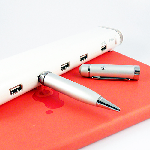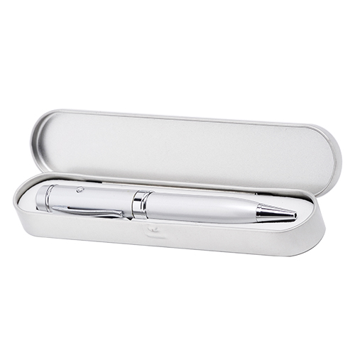 Boligrafo metalico con usb de 8 gb y senalador laser, incluye estuche metalico