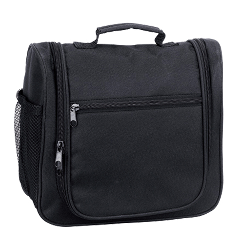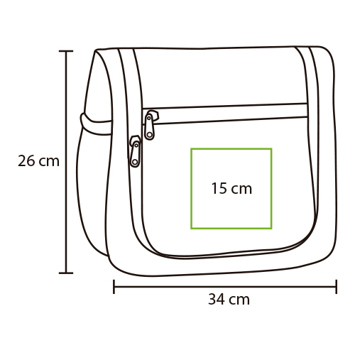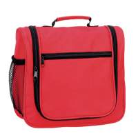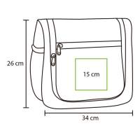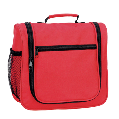 Bolsa multiusos desplegable fabricada en poliester con compartimentos, colores: azul, rojo y negro, Tamaño 26 x 34 cms, area de impresion 15 x 15 cm