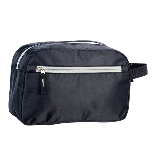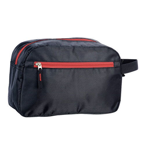 Bolsa multiusos color negro de poliester y cierre de color: azul, rojo y gris