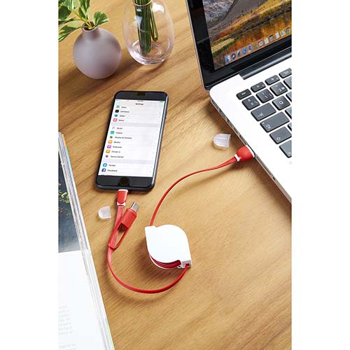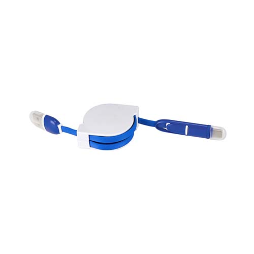 CABLE FERN (Cable retráctil cargador y para transferencia de datos. Compatible con USB, 8 pin, micro USB y entrada tipo C. Incluye protectores para los conectores. Longitud de cable 1 m aproximadamente. )