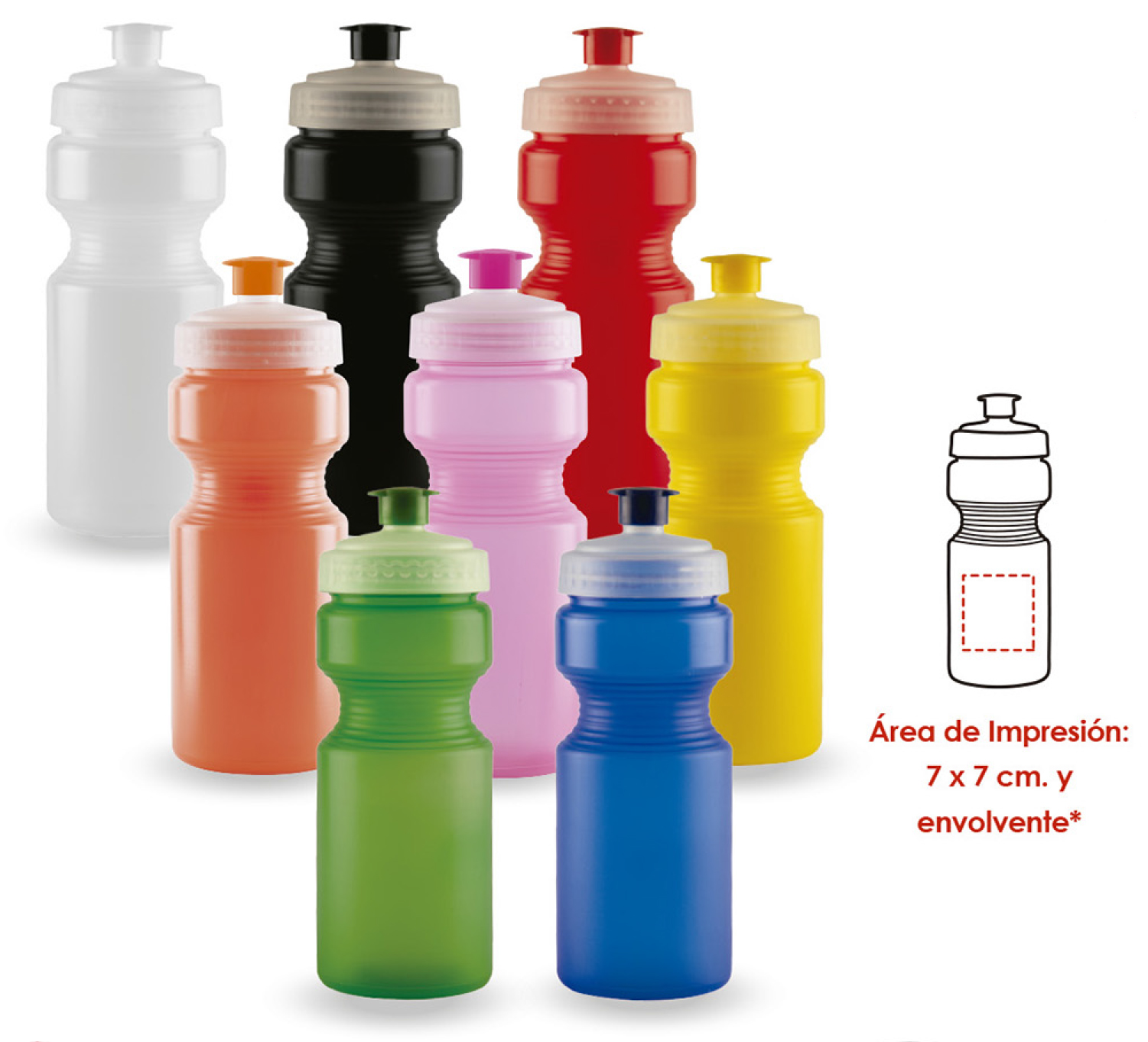 CILINDRO DE POLIPROPILENO CAP. 500 ML IMPRESION EN SERIGRAFIA AREA 7 X 7 CM Y A COLOR EN CALCOMANIA ENVOLVENTE.