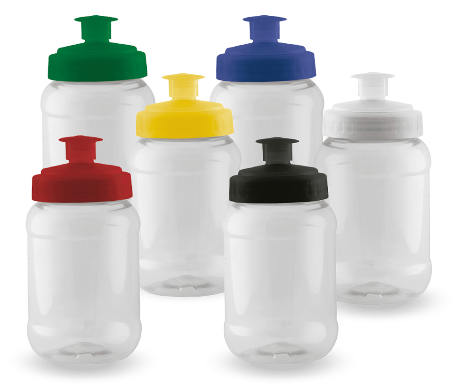 ENVASE TRANSPARENTE, TAPAS DE COLOR CAP. 500 ML.
