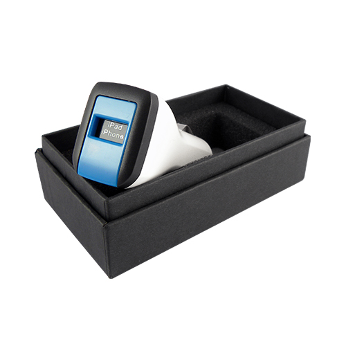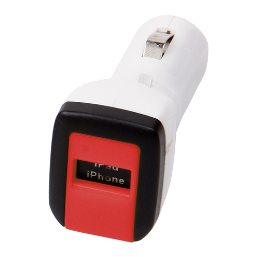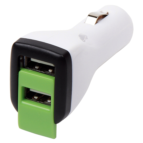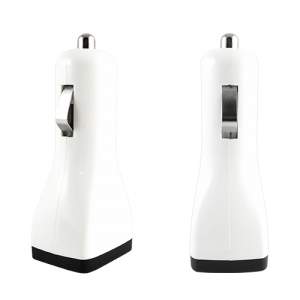 Cargador de auto para dispositivos moviles con 2 salidas, fabricado en material abs. incluye caja individual