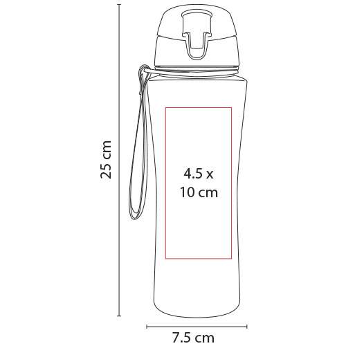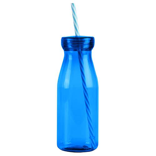 Cuerpo traslucido. Tapa de rosca con lazo. No utilizar con bebidas gaseosas ni líquidos calientes. Libre de bpa