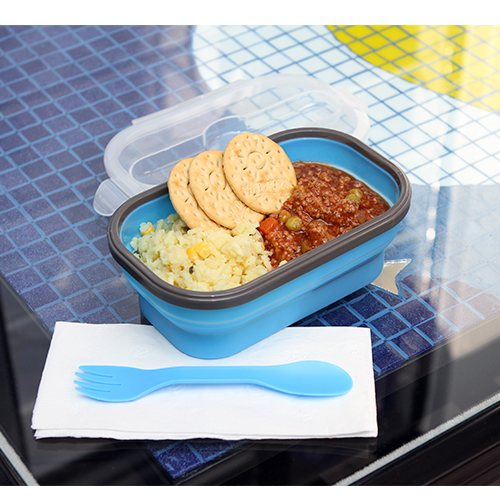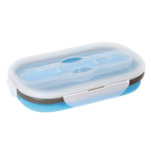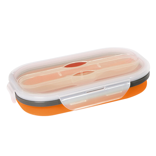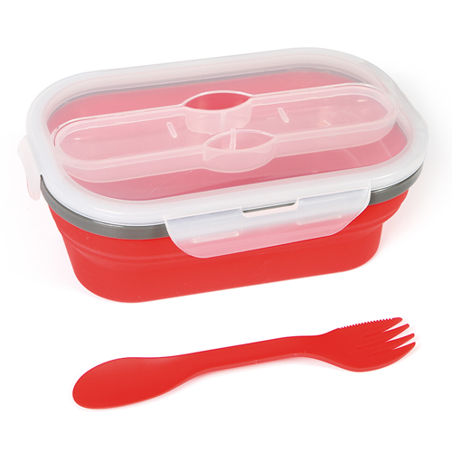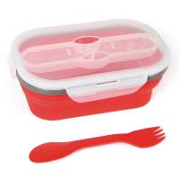 Contenedor de alimentos plegable fabricado en silicon, con cubierto 3 en 1 (cuchara, tenedor y cuchillo), colores: azul,naranja,rojo y rosa