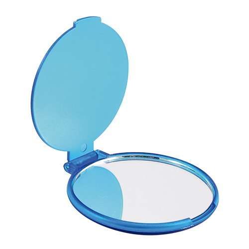 Espejo de bolsillo redondo fabricado en plastico, colores: azul, blanco, morado, rosa, rojo y naranja
