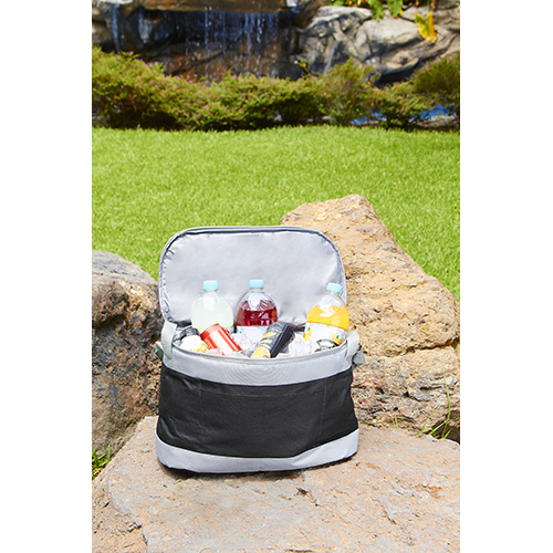 Descripción: HIELERA BALTY (Interior plastificado impermeable. Bolsa frontal. Asas laterales y correa ajustable.)