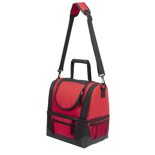 Descripción: HIELERA JENA (Interior plastificado impermeable. Bolsa principal y frontal. Bolsa lateral de red. Red interna para separar. )