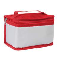 Hielera fabricada en poliester con forro de polietileno, colores: azul, morado, naranja, rojo y verde