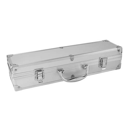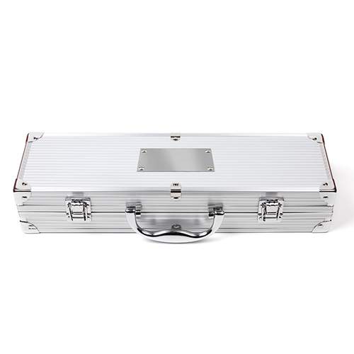 SET DE BBQ SNAZZY (Incluye pinzas, espátula, tenedor para BBQ y estuche metálico.)