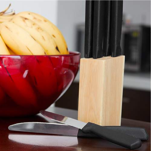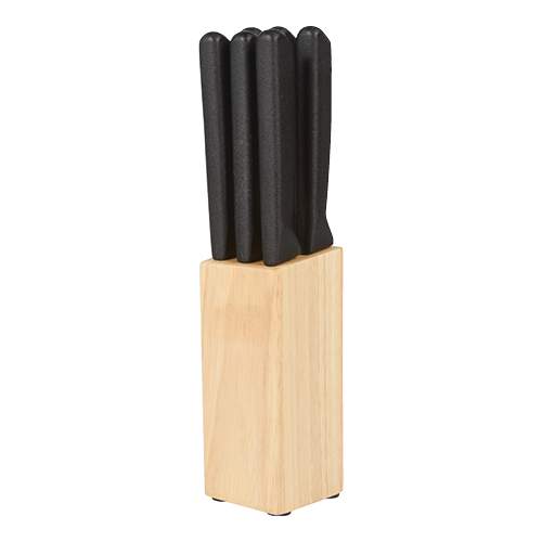 SET DE CUCHILLOS CORVI (Incluye 6 cuchillos y base de madera.)