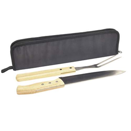 Tenedor: 33 cm y cuchillo: 32,5 cm. Set de cuchillo y tenedor con mango de madera.