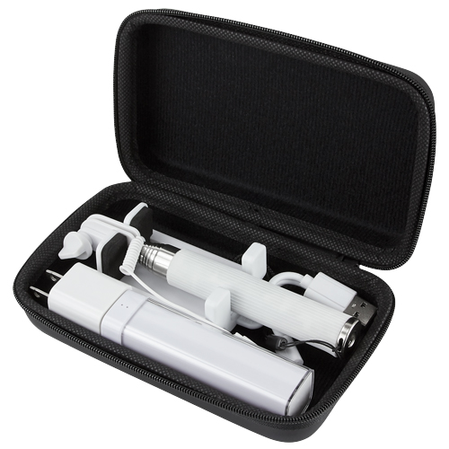 KIT KEIBU (Incluye mini selfie stick, batería auxiliar de 2200 mAh con cable USB-Micro USB y adaptador de corriente con entrada USB. Incluye estuche.)
