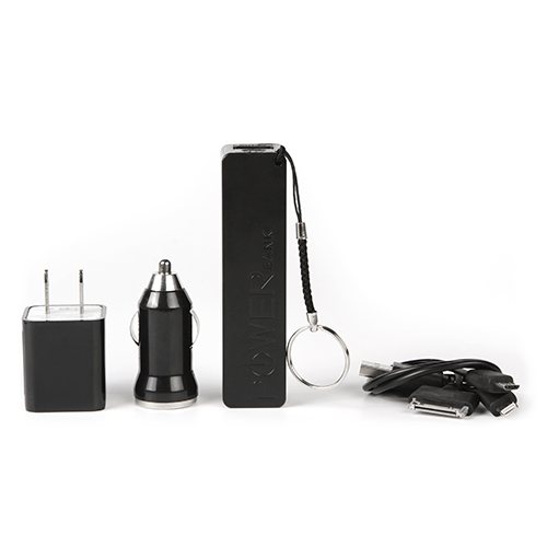 Kit de accesorios para smartphone,con power bank de 2600 mah,cargador para auto,de pared,recargable con cable usb a pc y cable usb entrada de iphone y micro usb,estuche con cierre