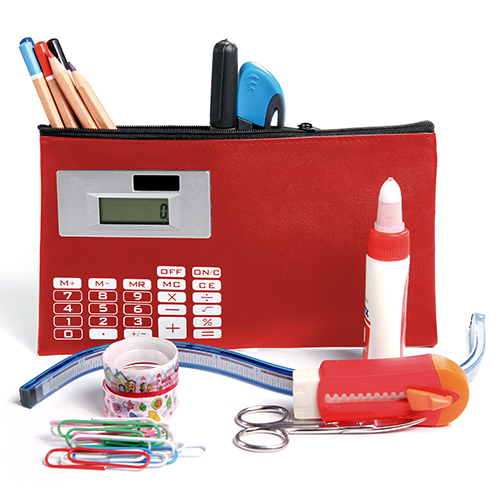 Lapicera escolar fabricada en pvc con calculadora, colores: azul y rojo