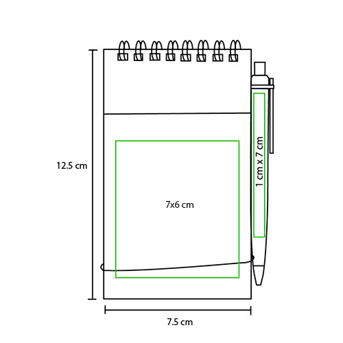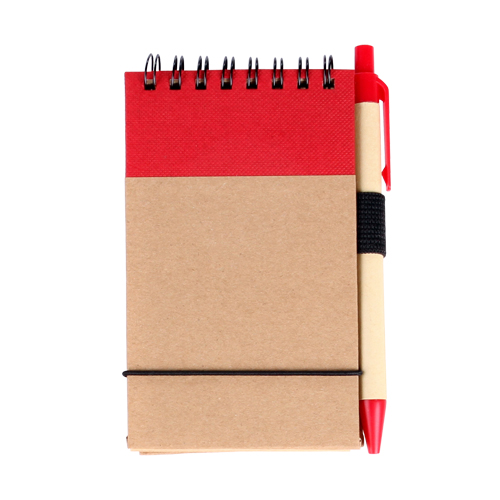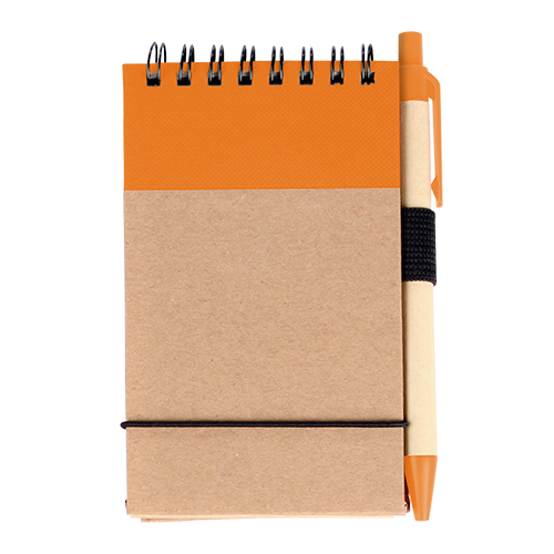 Libreta ecologica pocket con 50 hojas de raya y pluma tinta negra, colores: rojo, amarillo, naranja, azul, verde y negro