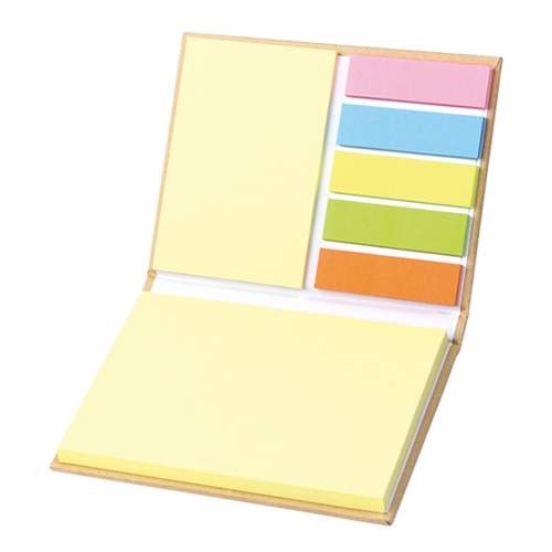 Libreta ecologica con 50 hojas, notas adhesivas (25 hojas) y banderitas de colores (125 en 5 colores), colores: azul, rojo y carton