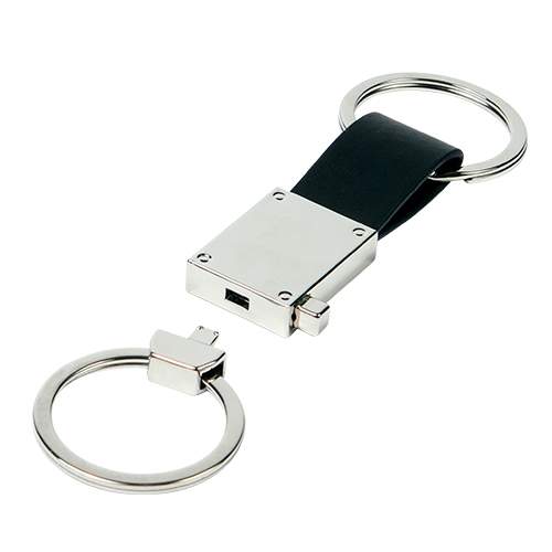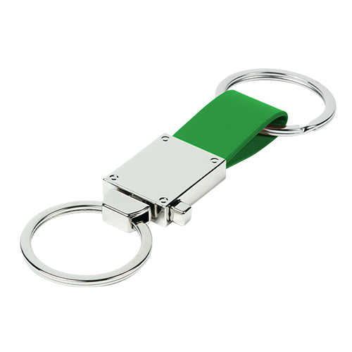 Llavero fabricado en aleacion de zinc, con correa de curpiel (poliuretano) y argolla desprendible con caja de carton individual, colores: azul, negro, rojo y verde