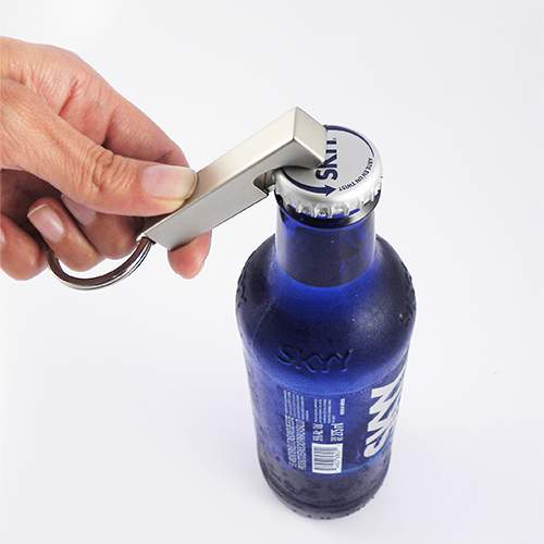 Llavero metalico rectangular con destapador y caja de lujo individual