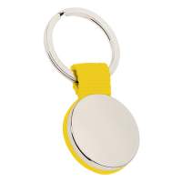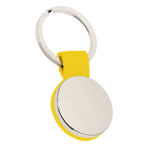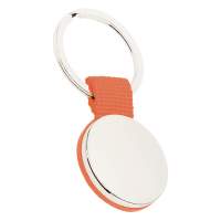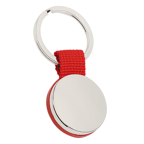 Llavero redondo metalico con tela, incluye caja, colores: rojo, amarillo, negro, azul, verde y naranja