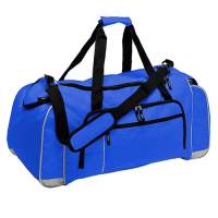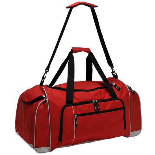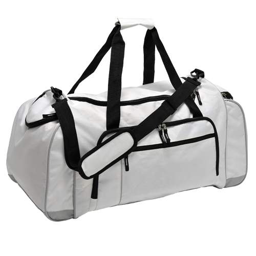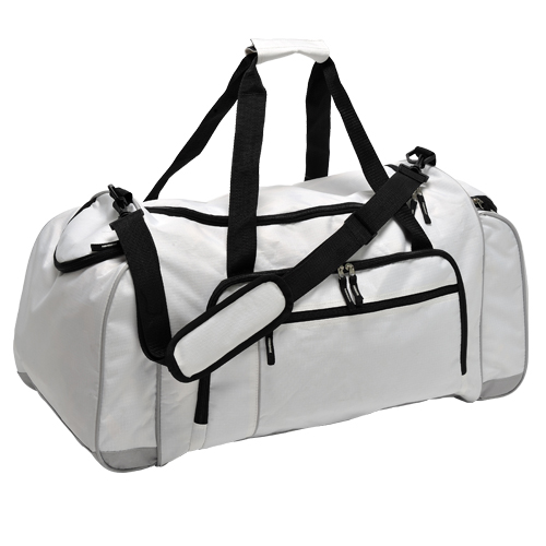 Maleta deportiva multiusos fabricada en nylon con compartimento para calzado y correa de hombro regulable, colores: azul, rojo, negro y blanco