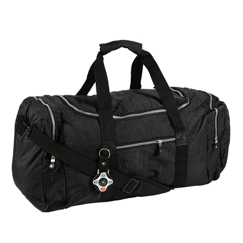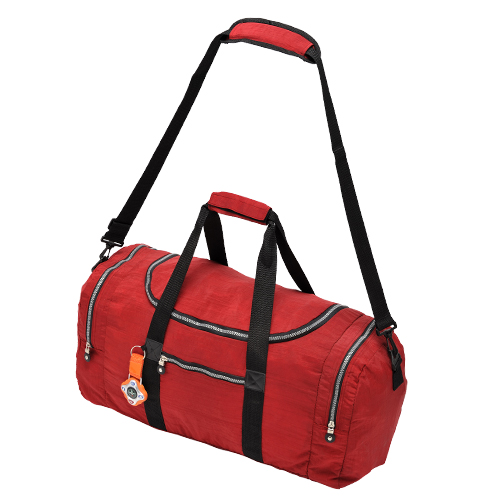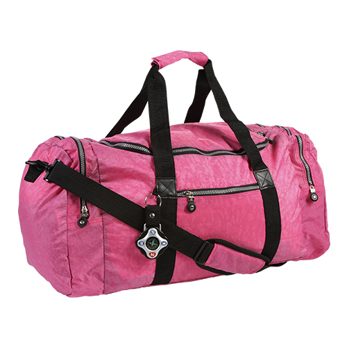 Maleta deportiva tipo kipling fabricada en nylon con llavero-brujula y correa de hombro regulable, colores: rosa, azul, negro y rojo