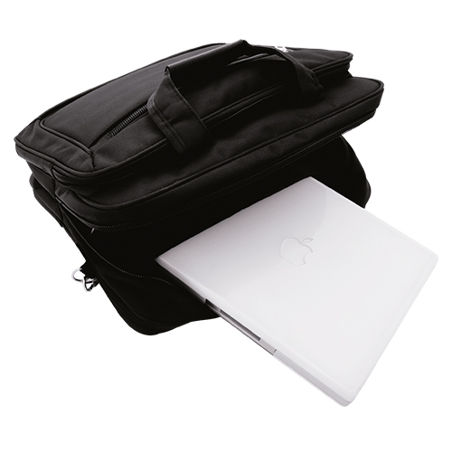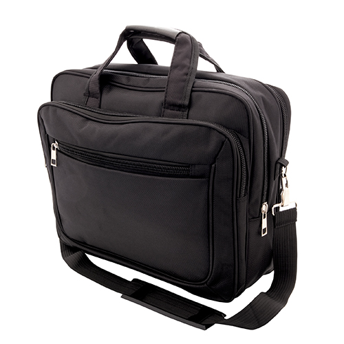 Maletin ejecutivo fabricado en poliester con bolsillo acolchonado para portatil, con asa y correa de hombro color negro