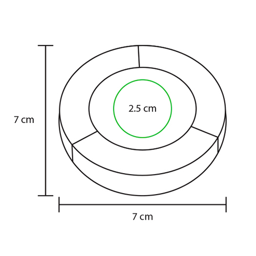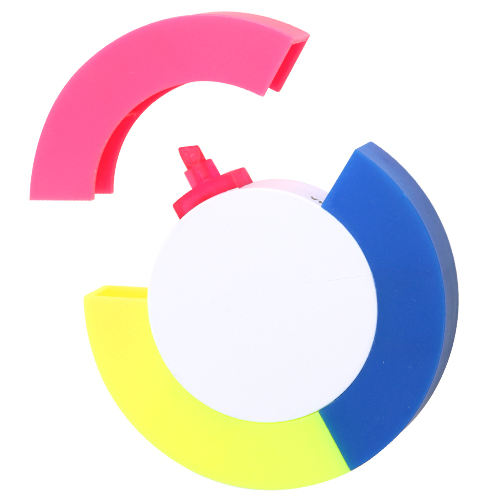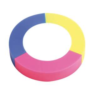 Figura de plastico en forma de circulo con 3 marca textos de colores
