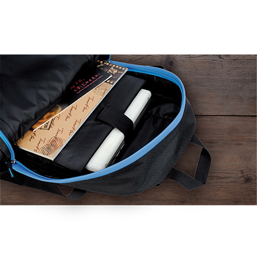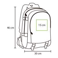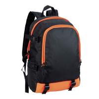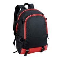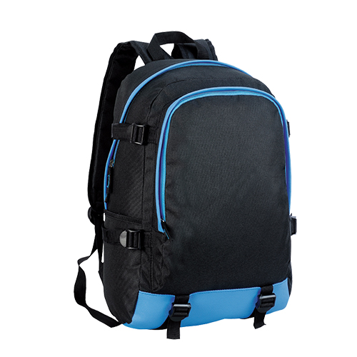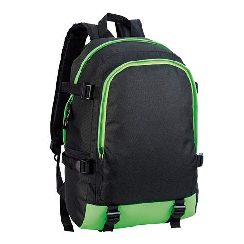 Mochila back pack de poliester con porta laptop y bolsa a un costado, colores: rojo, verde, azul y naranja