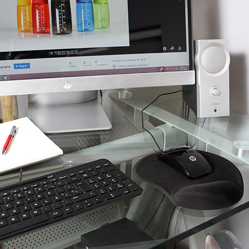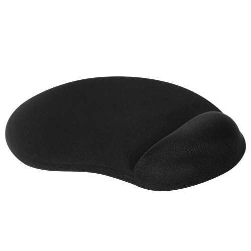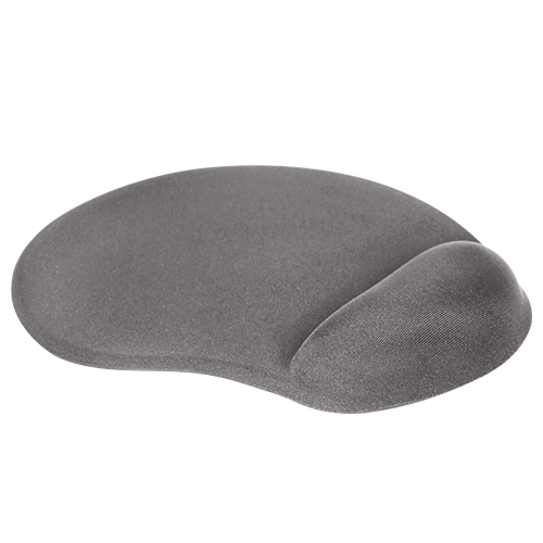 Mouse pad ergonomico de plastico con cubierta de tela y descansa muneca de silicon, color gris y negro