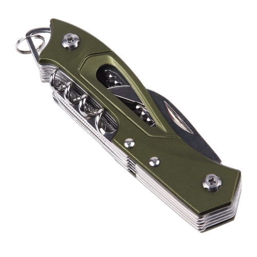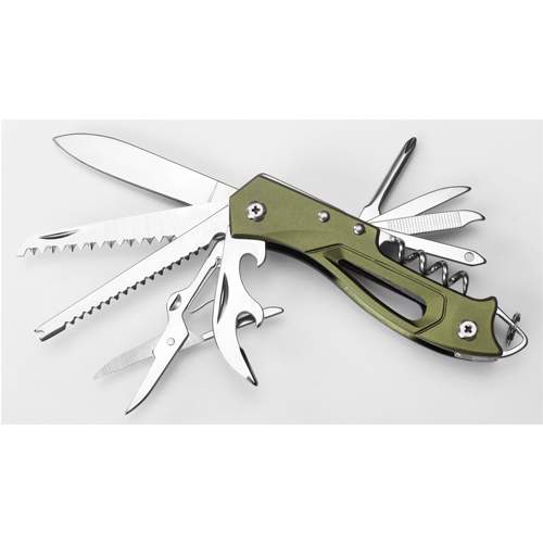 Navaja de acero inoxidable y cubierta de alumina con 10 funciones, incluye estuche, colores: verde y gris